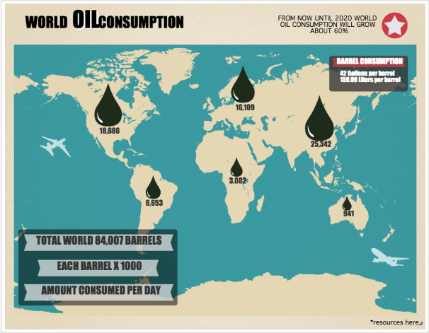Infografiikasta alla esimerkkejä. Ensimmäisenä vasemmalla harjoituksena kokoamani lapsen kuvatukitaulu, oikealla ylhäällä työpaikkani GOGO Expressin etusivulla oleva infografiikka, joka kertoo yrityksen tarjoamista palveluista. Alla vasemmalla maailmankartalla visualisointi eri maanosien öljynkulutuksesta ja oikealla (kapeat, pienet kuvat) Angry Birds-pelin infografiikka sekä oikealla alhaalla infografiikka opiskelupaikan löytymiseen. Viimeisessä esimerkissä toteutuu alussa mainittu prosessi eli kolme vaihetta: alku, keskiosa ja loppu.