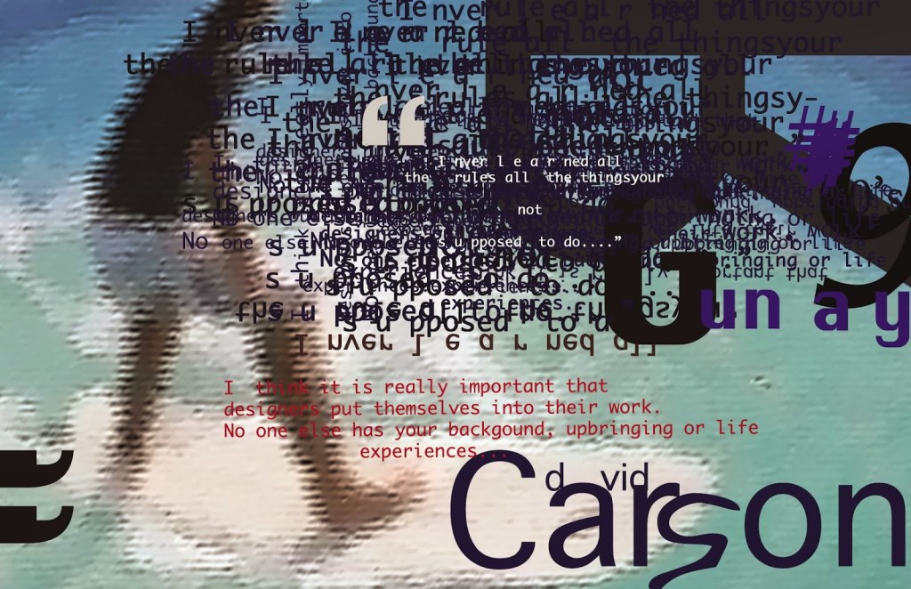 David Carson (s.1955) on amerikkalainen graafinen suunnittelija, taiteellinen johtaja ja surffaaja. Hänet tunnetaan parhaiten innovatiivisesta aikakauslehtisuunnittelustaan ja kokeellisen typografian käytöstään. Hän oli mm. Ray Gun -lehden taiteellinen johtaja, jossa hän käytti suurta osaa tunnetusta typografisesta ja asettelulähestymistavasta. Hänen laajalti jäljitelty esteettisyytensä määritteli niin kutsutun ” grunge-typografian” aikakauden.